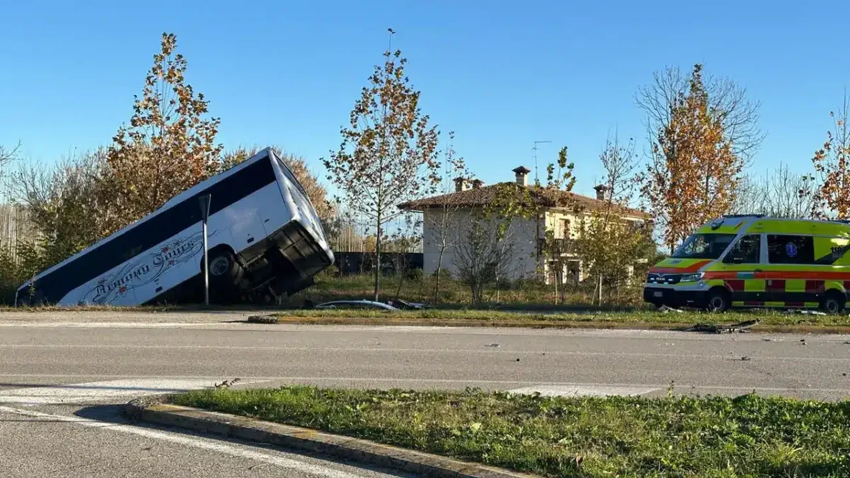 Schianto a Sesto al Reghena, vicino a Pordenone: bus con studenti finisce nel fossato dopo l’impatto, grave una donna.