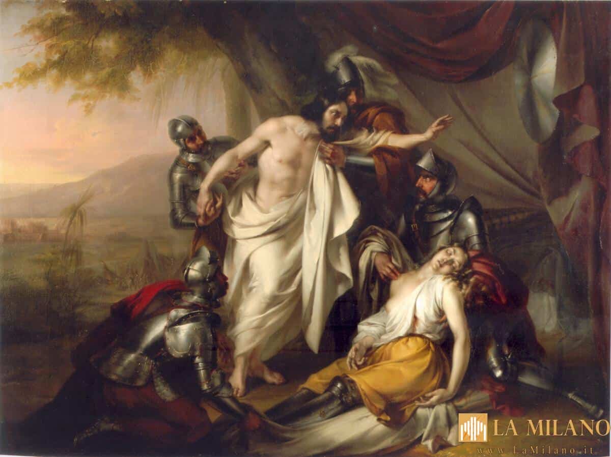 Il dipinto di Michelangelo Grigoletti (1801-1870), realizzato per il collezionista triestino Leone Hierschel, raffigura un episodio descritto nella “Gerusalemme Liberata” di Tasso e costituisce un i…